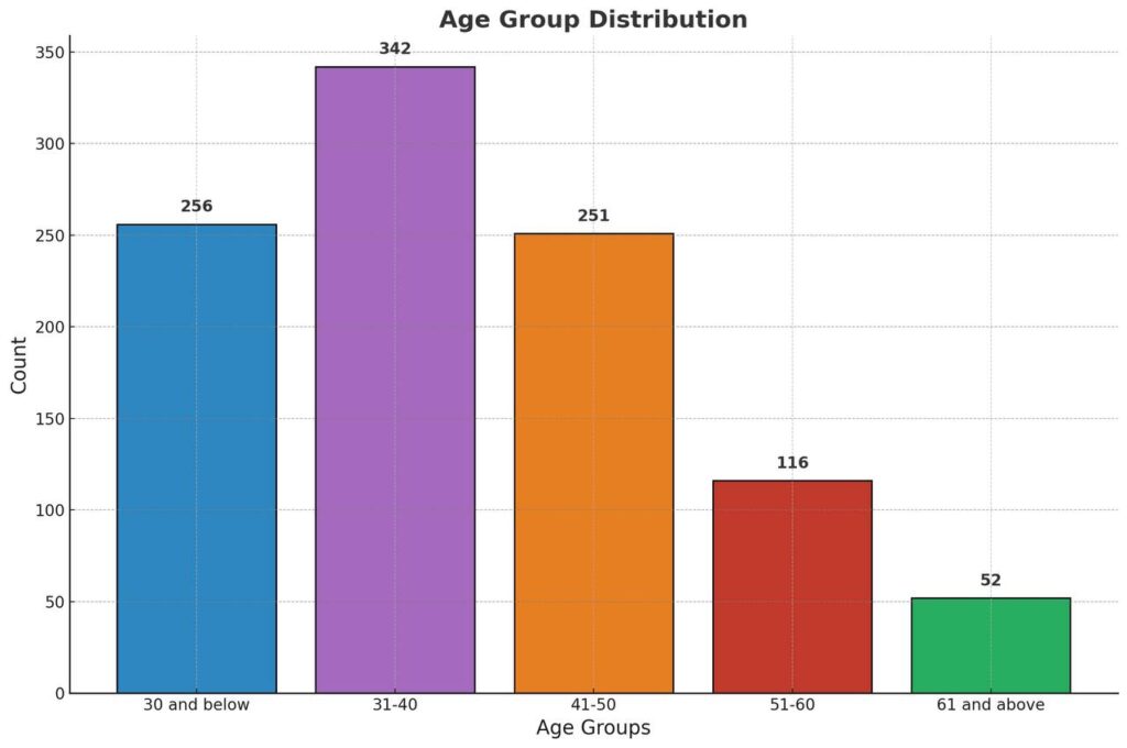 As listed above 586 or 57.6% of the total dataset are aged 35 or above, which indicates that these internees are not in an age group that would normally receive job training in East Turkistan.